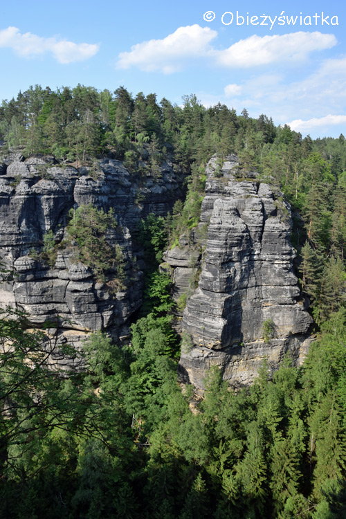 Miejscem najbardziej charakterystycznym dla czeskich Gór Połabskich jest największy w Europie naturalny most skalny o nazwie Pravčická brana (niem. Prebischtor). Rozpiętość łuku mostu wynosi nieco ponad 26 metrów, wysokość prześwitu to 16 metrów. Ta piękna formacja skalna znajduje się w bardzo malowniczym miejscu, więc można podziwiać i ją samą, i piękną okolicę. Skały, wzgórza, lasy… Doskonała okolica do wędrówek po szlaku.