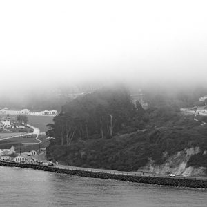 Pierwszą stacją był oczywiście most Golden Gate, który w następnym tygodniu będzie obchodził swoje osiemdziesiąte urodziny (oddany do użytku 27 maja 1937)! Przy wjeździe do miasta na bramkach pogoda była fantastyczna, ale w oddali, na Zatoką zbierały się chmury. Ruszyłam więc szybciutko w kierunku mostu, ale i tak, kiedy do niego dotarłam, pogoda nie była w najlepszym humorze. Słońce się naburmuszyło, zrobiło się przeraźliwie zimno, a piękny most otuliła gęsta mgła… I tyle go widzieli! Nie dając za wygraną, trwałam tam przez kilka godzin z nadzieją, że wiatr rozgoni mleczną mgłę. Obeszłam most z każdej strony (w miarę możliwości oczywiście) i nic; przeszłam po moście tam i z powrotem, od początku do końca, i też nic; zeszłam nad sam brzeg oceanu, trochę dalej od mostu, znowu nic… Tylko mgła, mgła, mgła…